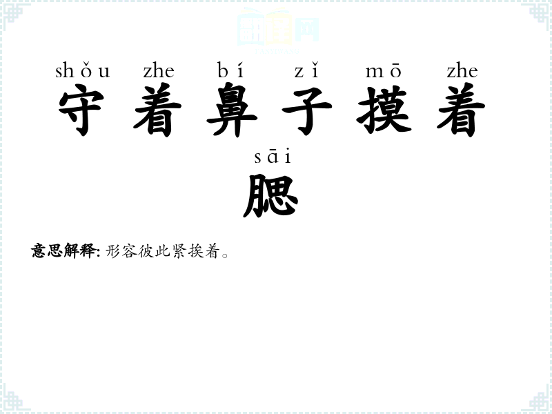 | 守着鼻子摸着腮 | 形容彼此紧挨着。 |