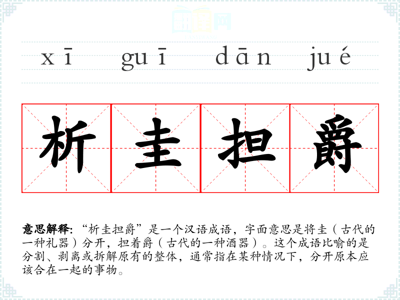 - “分崩离析”:形容分裂或瓦解的状态,与“析圭担爵”类似,强调整体的分裂。