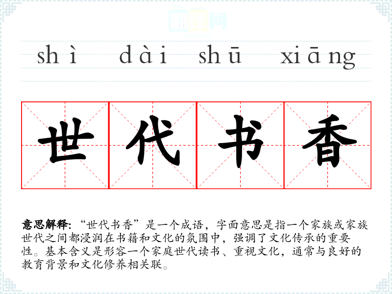 | 世代书香 | 世世代代都是读书人家。 |