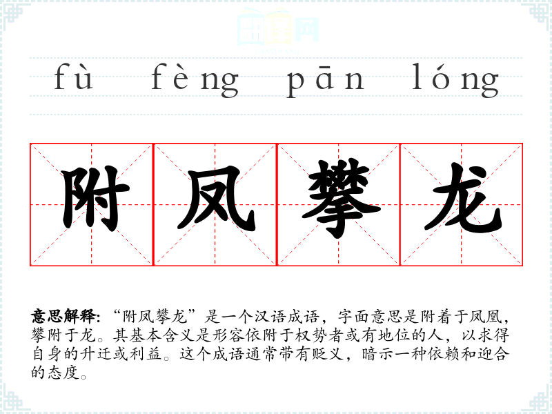 - 在这个竞争激烈的职场上,有些人总是喜欢附凤攀龙,试图通过迎合上司来获得升迁机会。