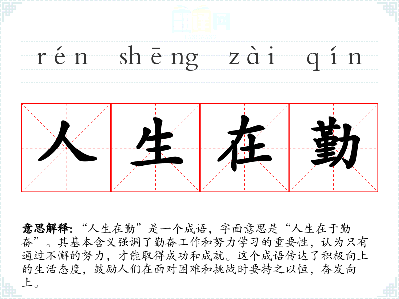 通过对“人生在勤”的学,我更加深刻地理解了勤奋的重要性。这一成语不仅丰富了我的语言表达,也为我提供了指导人生的哲理,让我在学和生活中始终保持积极向上的态度。