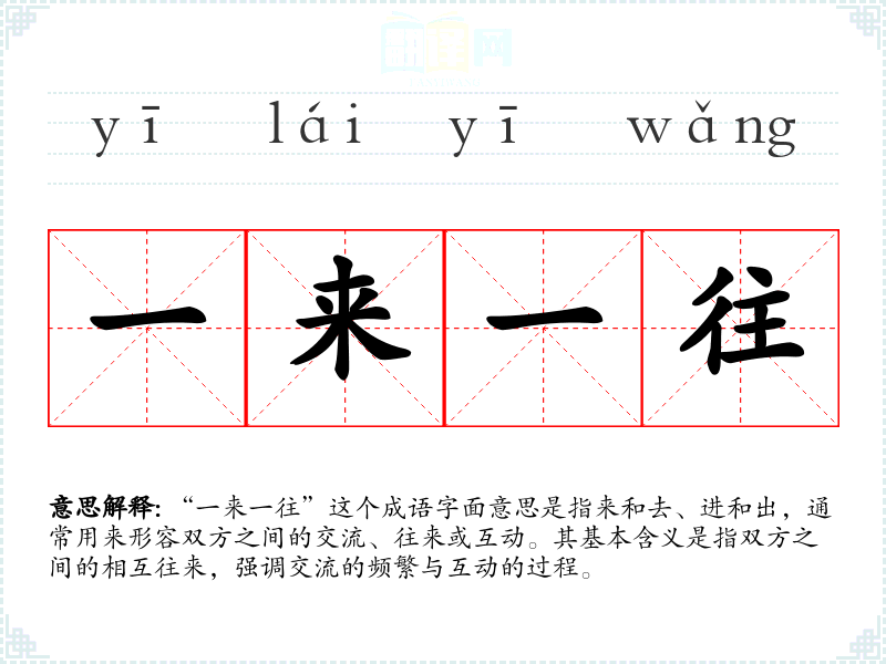 “一来一往”这个成语字面意思是指来和去、进和出,通常用来形容双方之间的交流、往来或互动。其基本含义是指双方之间的相互往来,强调交流的频繁与互动的过程。