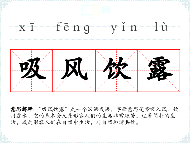 - 锦衣玉食:形容生活富裕,衣食无忧,与“吸风饮露”的简朴生活形成鲜明对比。