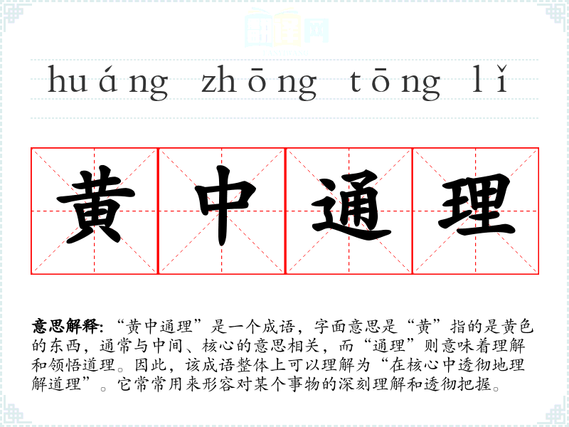 通过对“黄中通理”的全面学,我更加理解了在语言学和表达中追求深刻理解的重要性。这个成语不仅丰富了我的词汇,也深化了我对知识的理解,鼓励我在日常生活中不断探索和思考。