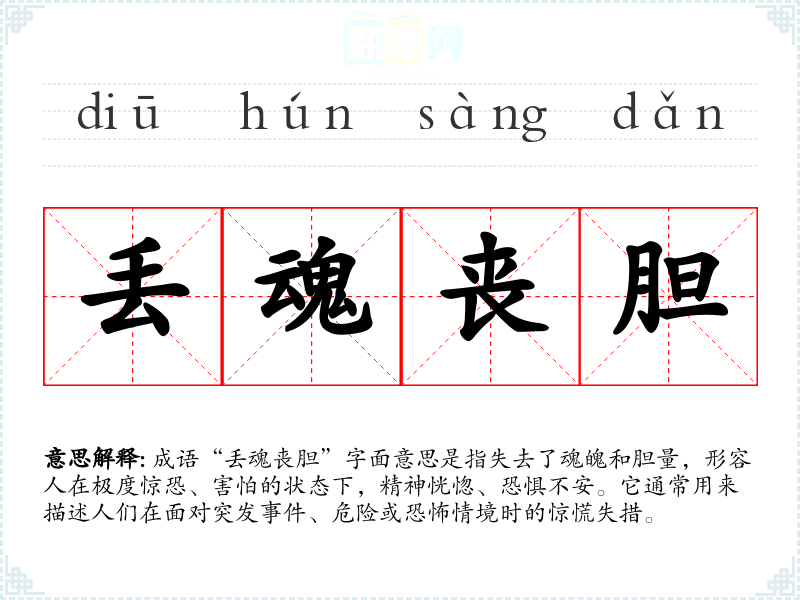 - 文学作品:形容人物在险境中表现出的恐惧感,如在小说中描绘战斗场景时,可以描写某个角色在敌人突袭时“丢魂丧胆”。