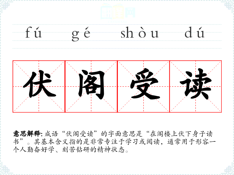 成语“伏阁受读”的字面意思是“在阁楼上伏下身子读书”。其基本含义指的是非常专注于学*或阅读,通常用于形容一个人勤奋好学、刻苦钻研的精神状态。