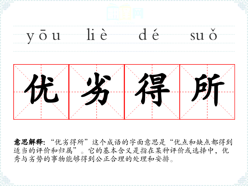 - 日常对话:在讨论工作、学*等方面的评价时,可以提到“优劣得所”来强调公平公正的重要性。