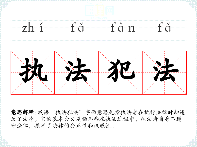 成语“执法犯法”字面意思是指执法者在执行法律时却违反了法律。它的基本含义是指那些在执法过程中,执法者自身不遵守法律,损害了法律的公正性和权威性。