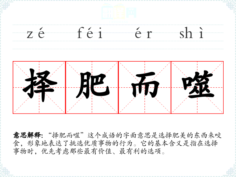 在英语中,可以与“pick and choose”相比较,二者都强调选择的智慧与优先性。然而,“择肥而噬”更具文化深度,体现了**传统对选择的重视。