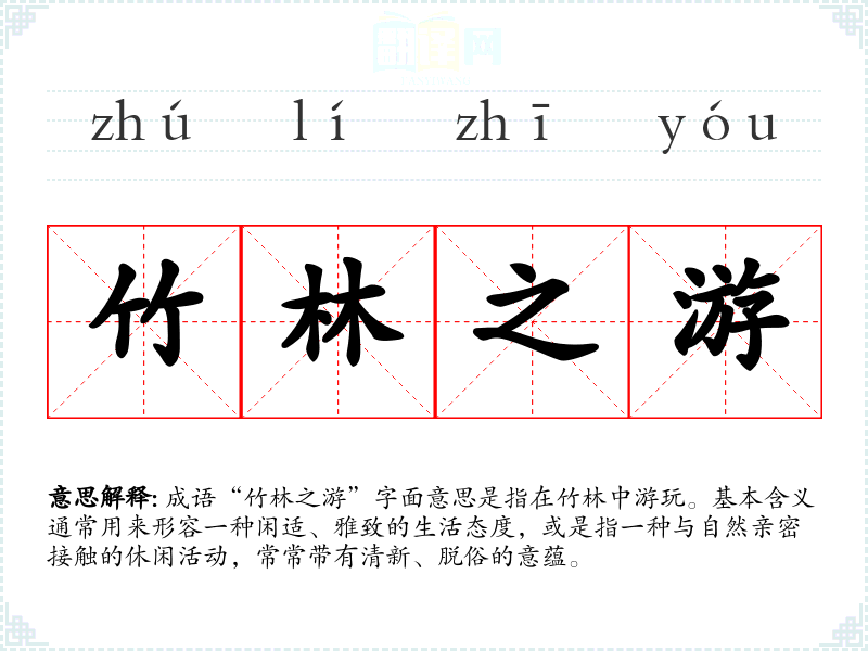 “竹林之游”在**传统文化中有着深厚的根基,象征着对自然的向往和对世俗的超脱。在现代社会中,这种成语能够引发对快节奏生活的反思,提醒人们寻找内心的宁静与和谐,适用于现代人追求生活质量的理念。