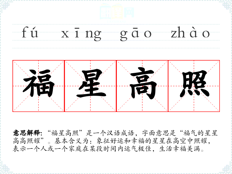 - 吉星高照:表示吉祥的星星高高照耀,带来好运。