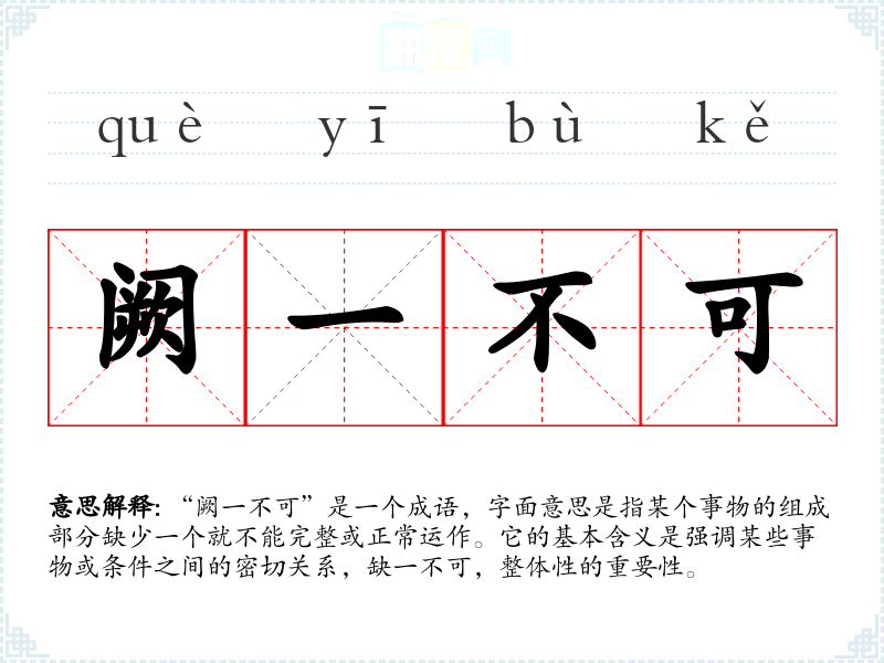- 缺一不可:与“阙一不可”意思相同,强调整体性。