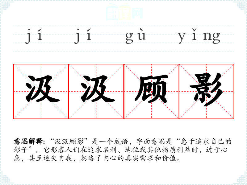 “汲汲顾影”是一个成语,字面意思是“急于追求自己的影子”。它形容人们在追求名利、地位或其他物质利益时,过于心急,甚至迷失自我,忽略了内心的真实需求和价值。