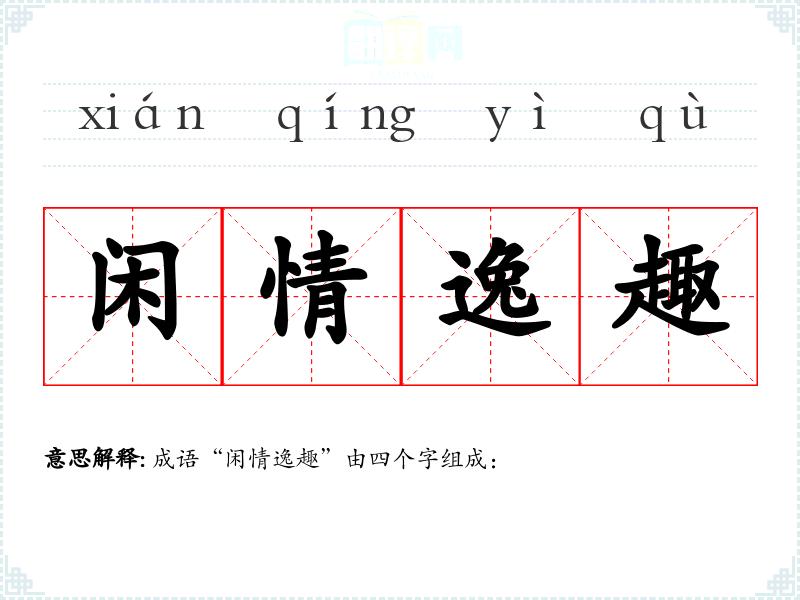通过对“闲情逸趣”的学,我认识到在现代快节奏生活中,保持一份闲适与宁静是多么重要。它不仅有助于心理健康,也能提升生活的质量。在语言学和表达中,运用这样的成语可以使我的表达更加生动和具有文化深度。