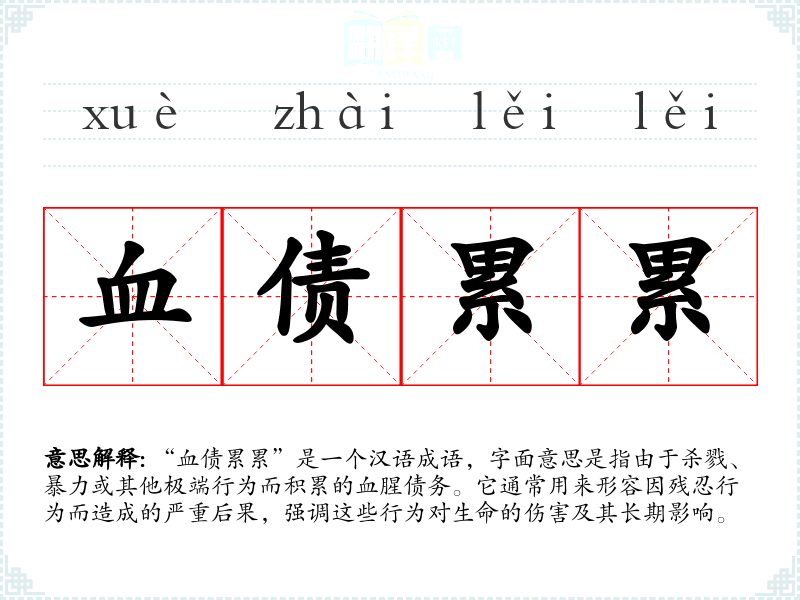 - “血海血仇”:指积累了许多仇恨与怨恨,强调了深重的仇恨和暴力。