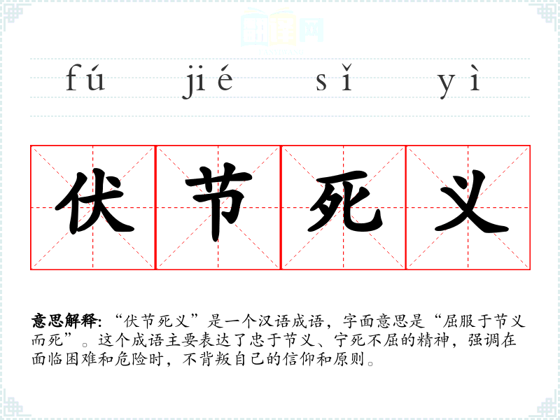 “伏节死义”是一个汉语成语,字面意思是“屈服于节义而死”。这个成语主要表达了忠于节义、宁死不屈的精神,强调在面临困难和危险时,不背叛自己的信仰和原则。