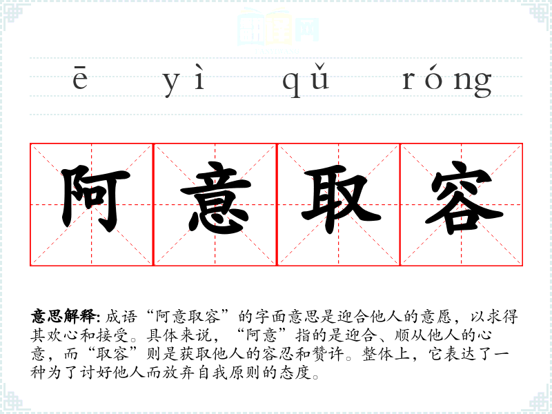 - 演讲:在阐述职场文化或人际关系时,可能提到“阿意取容”作为一种警示,提醒人们保持自我。