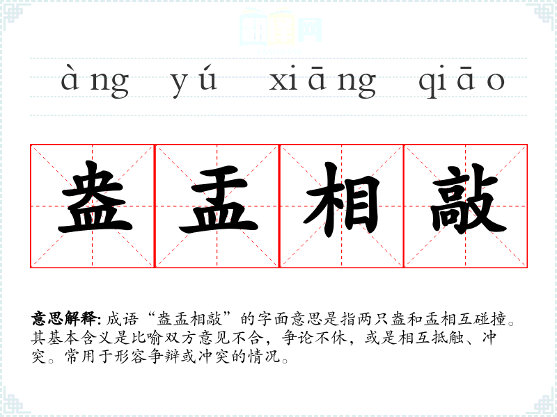 - 反义成语:和气生财、心心相印。它们强调和谐与共识,反映了与“盎盂相敲”截然不同的情感和状态。