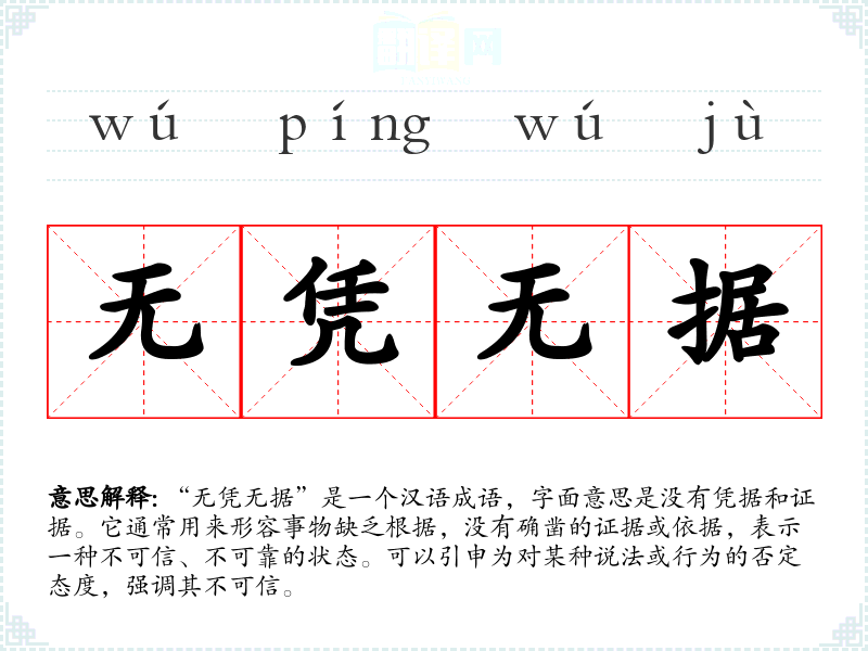 | 无凭无据 | 没有凭证和根据。 |