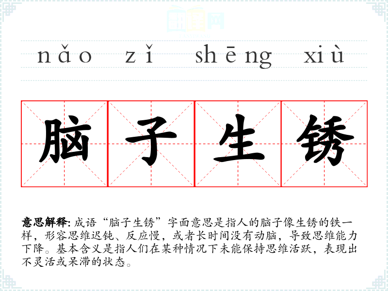 - 教育场合:老师可能会用这个成语来提醒学生多动脑思考:“考试临近,别让脑子生锈,赶紧复习!”