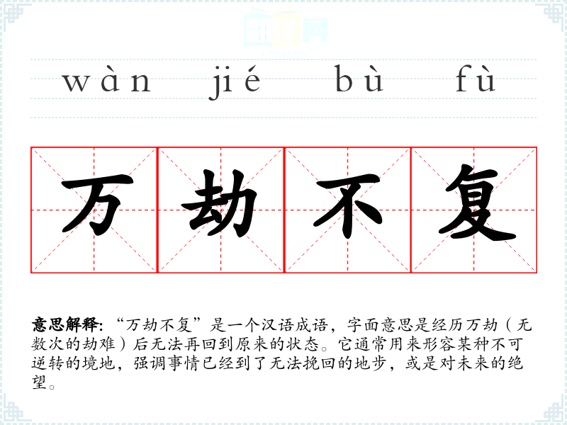 - 在文学作品中,作者可能用“万劫不复”来描绘角色的悲惨命运。