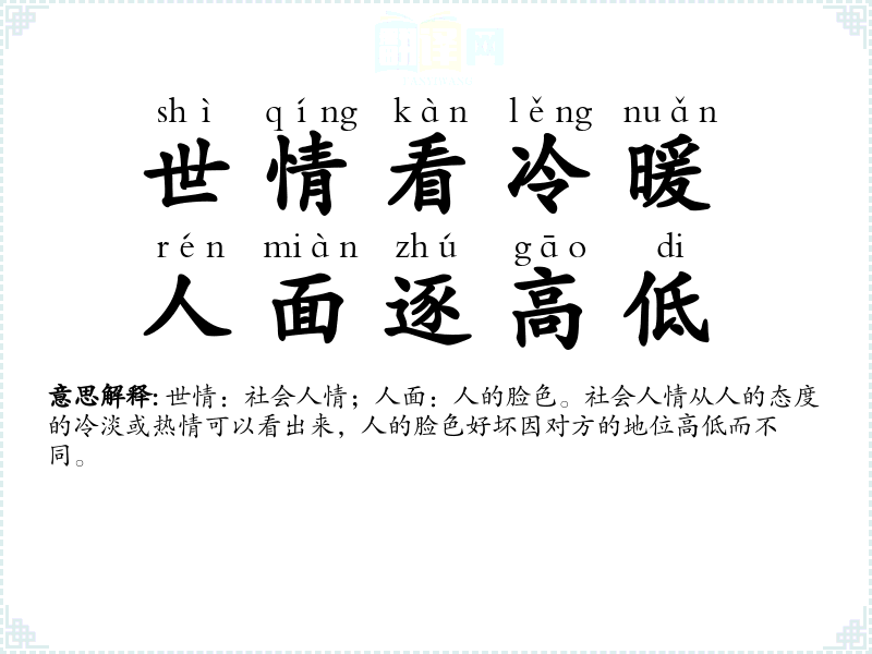 | 世情看冷暖,人面逐高低 |