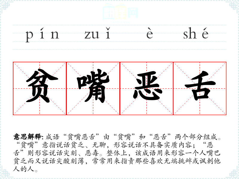 - 文学作品:在小说中描绘某个角色时,可以用“贫嘴恶舌”来形容其性格和言辞风格。