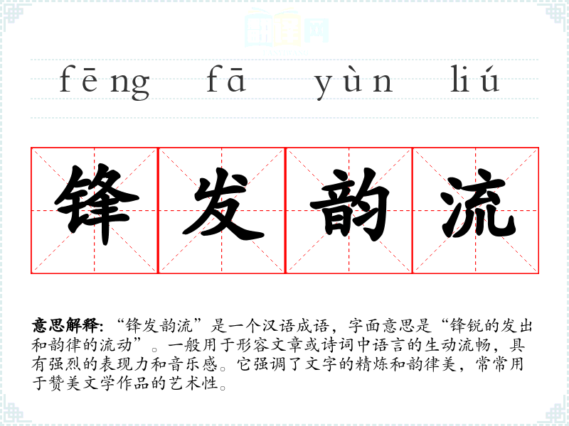 | 锋发韵流 | 指文章笔锋犀利,情韵欲流。 |