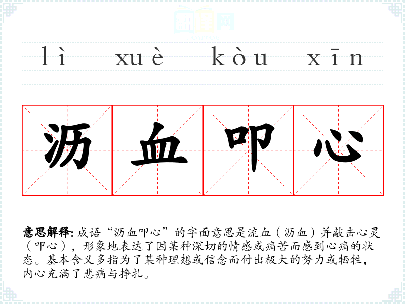 “沥血叩心”并不是古代经典文献中的成语,而是近现代汉语中常用的表达方式,反映了人们在激烈情感冲突或深刻思考时的心理状态。它可能与文学作品中的主题有关,例如对理想、责任的追求而引发的内心挣扎。