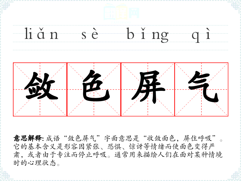 通过对“敛色屏气”的学,我理解到它不仅仅是一个成语,更是人们在特定情境下的情感反应的体现。在语言学和表达中,了解并灵活运用这样的成语,可以丰富我们的表达,增强沟通的深度和情感。