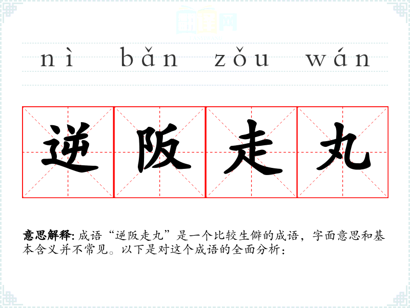 成语“逆阪走丸”是一个比较生僻的成语,字面意思和基本含义并不常见。以下是对这个成语的全面分析:
