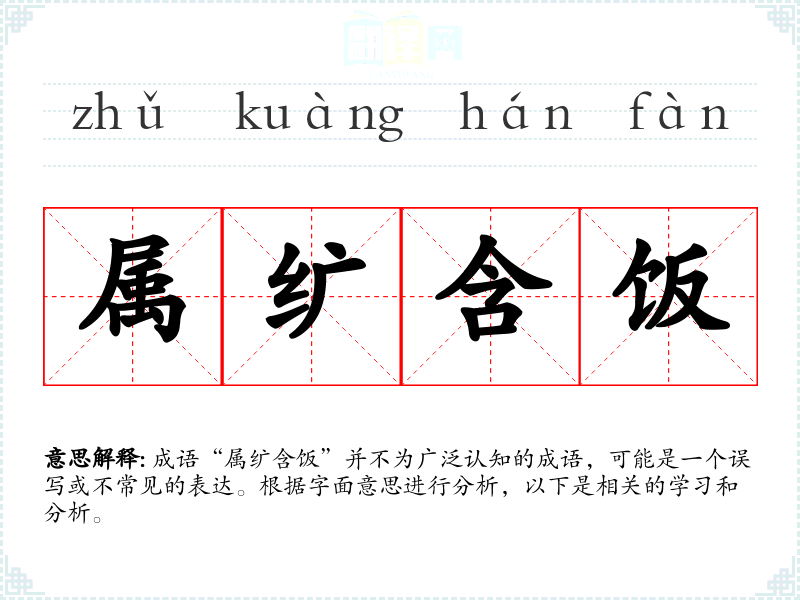 成语“属纩含饭”并不为广泛认知的成语,可能是一个误写或不常见的表达。根据字面意思进行分析,以下是相关的学习和分析。