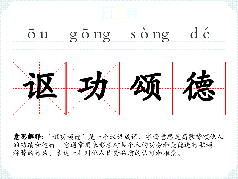 | 颂德歌功 | 颂扬恩德,赞美功绩。 |