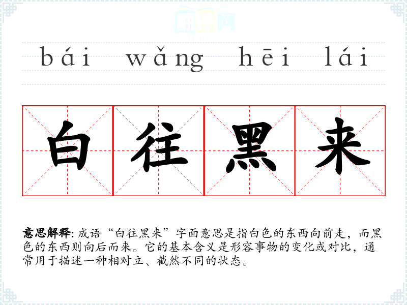 - 一成不变:指事物没有变化,和“白往黑来”形成鲜明对比。