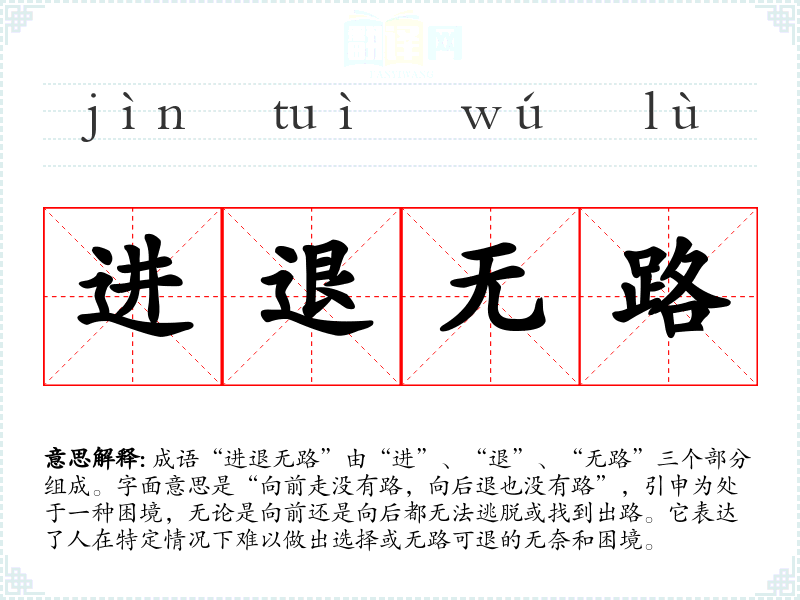 “进退无路”的历史背景较为复杂,虽然没有明确的出处,但它的意思可以追溯到古代兵法和战争策略。在古代战场上,士兵往往面临这种困境,进退两难的状态常常意味着战败或被围困的危险。这个成语体现了古人对困境的深刻理解,反映了在危急情况下的无奈。