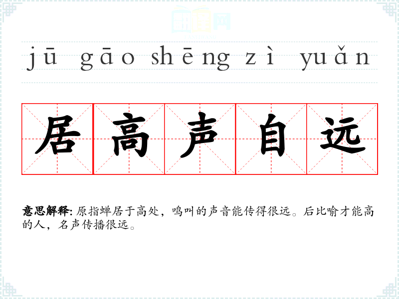 原指蝉居于高处,鸣叫的声音能传得很远。后比喻才能高的人,名声传播很远。
