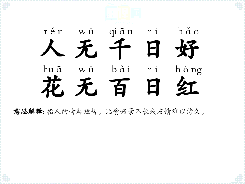 | 人无千日好,花无百日红 |