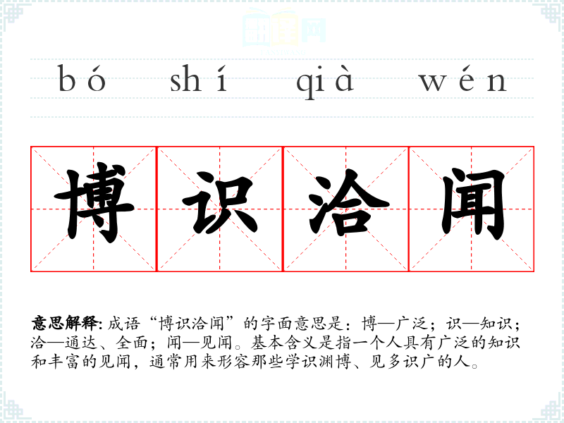 | 博识洽闻 | 见多识广,学识博大。 |