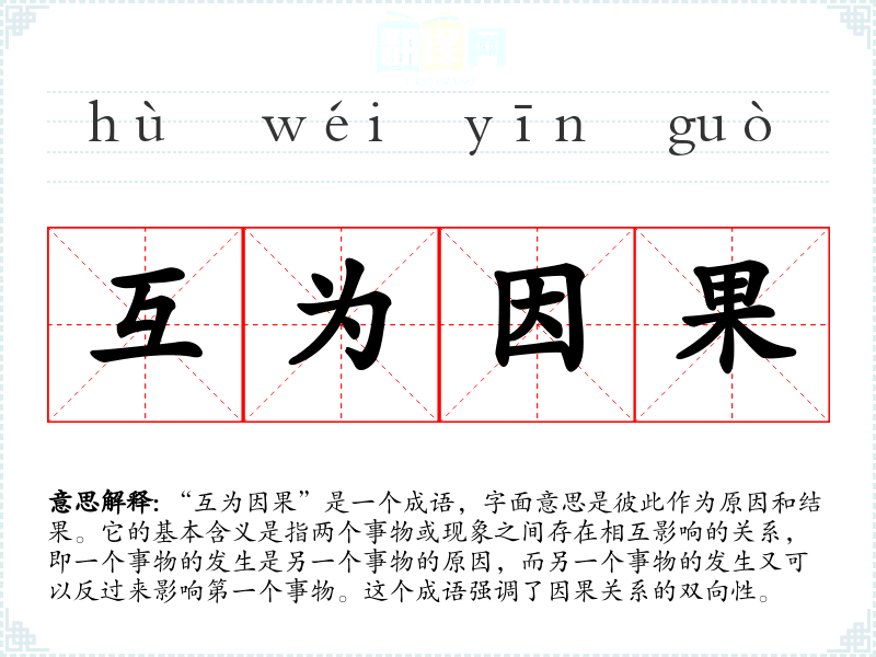 “互为因果”让我联想到复杂的人际关系和社会现象,常常在思考问题时提醒我要考虑多方面的影响因素。这种意识促使我在表达和交流时更加谨慎和全面。