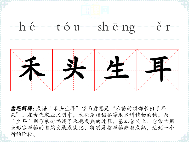 - 日常对话:在谈论某个项目或事情逐渐成熟时,可以用“禾头生耳”来形容其发展过程。