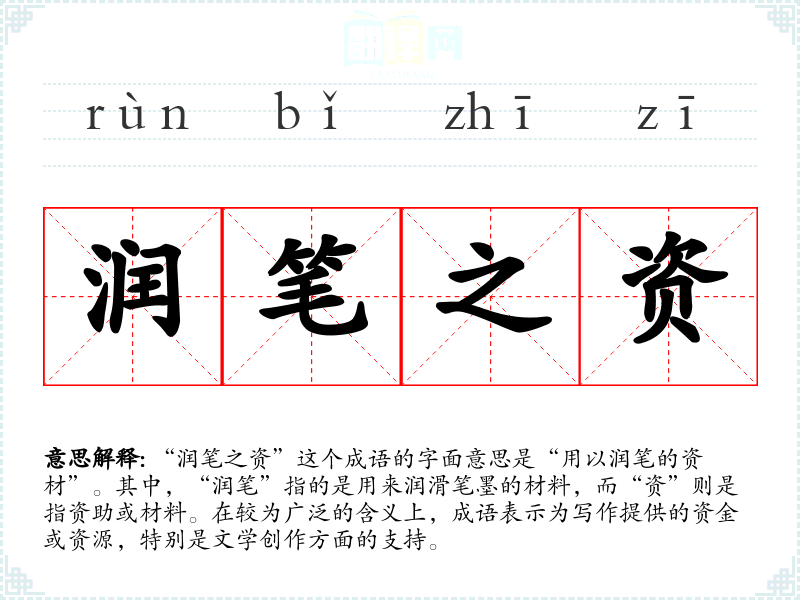 - 资助:提供资金帮助,类似于“润笔之资”。