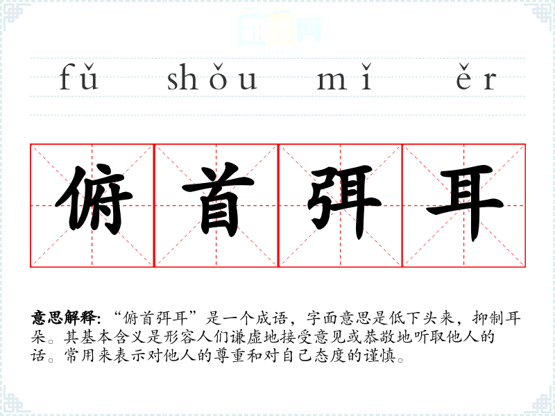 “俯首弭耳”是一个成语,字面意思是低下头来,抑制耳朵。其基本含义是形容人们谦虚地接受意见或恭敬地听取他人的话。常用来表示对他人的尊重和对自己态度的谨慎。