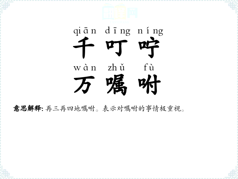 再三再四地嘱咐。表示对嘱咐的事情极重视。 |