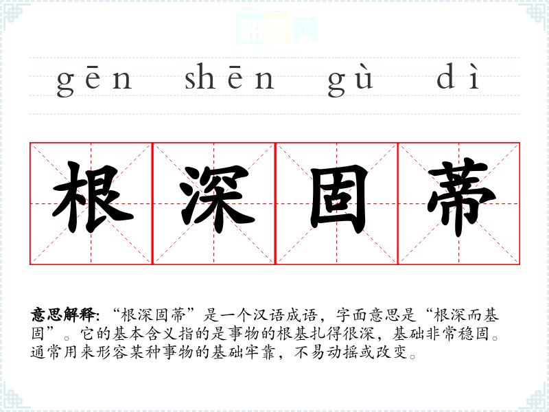 - 根基牢固:与“根深固蒂”意思相近,侧重于事物的基础稳固性。