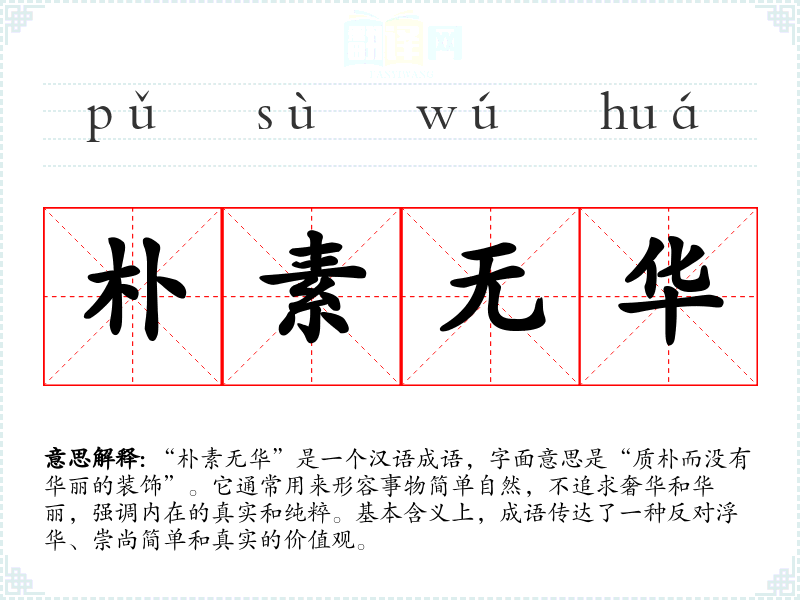 | 朴素无华 | 俭朴、不浮华。 |