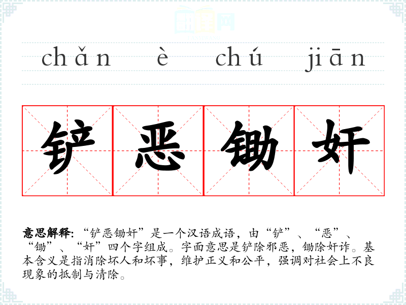 | 刬恶锄奸 | 铲除凶恶奸邪之人。 |