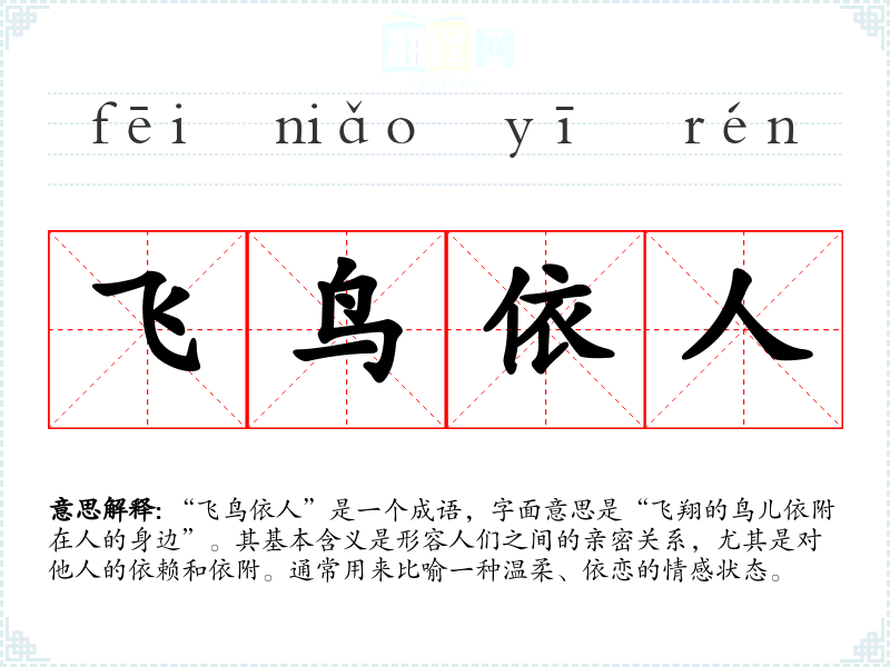 “飞鸟依人”是一个成语,字面意思是“飞翔的鸟儿依附在人的身边”。其基本含义是形容人们之间的亲密关系,尤其是对他人的依赖和依附。通常用来比喻一种温柔、依恋的情感状态。