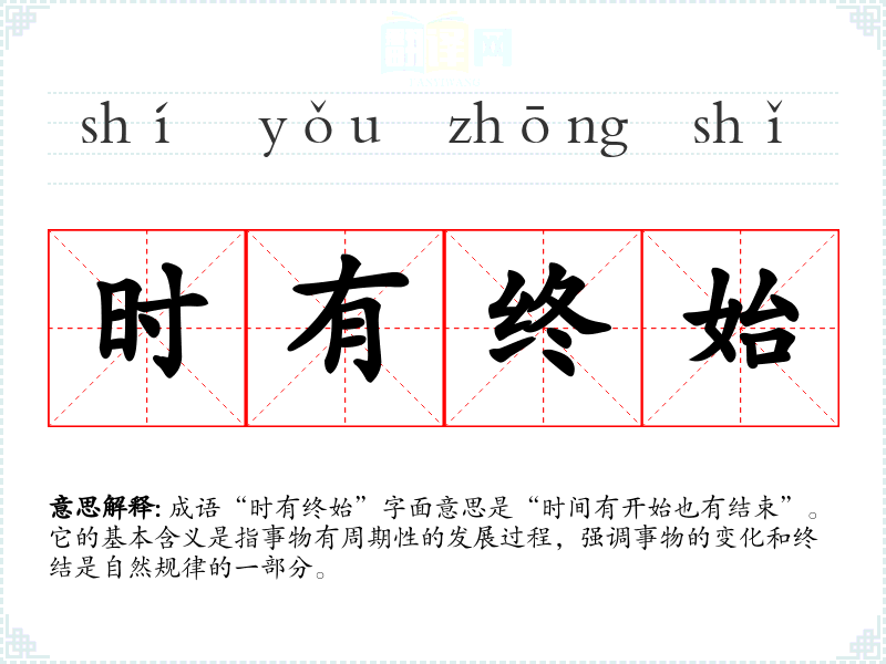 成语“时有终始”字面意思是“时间有开始也有结束”。它的基本含义是指事物有周期性的发展过程,强调事物的变化和终结是自然规律的一部分。
