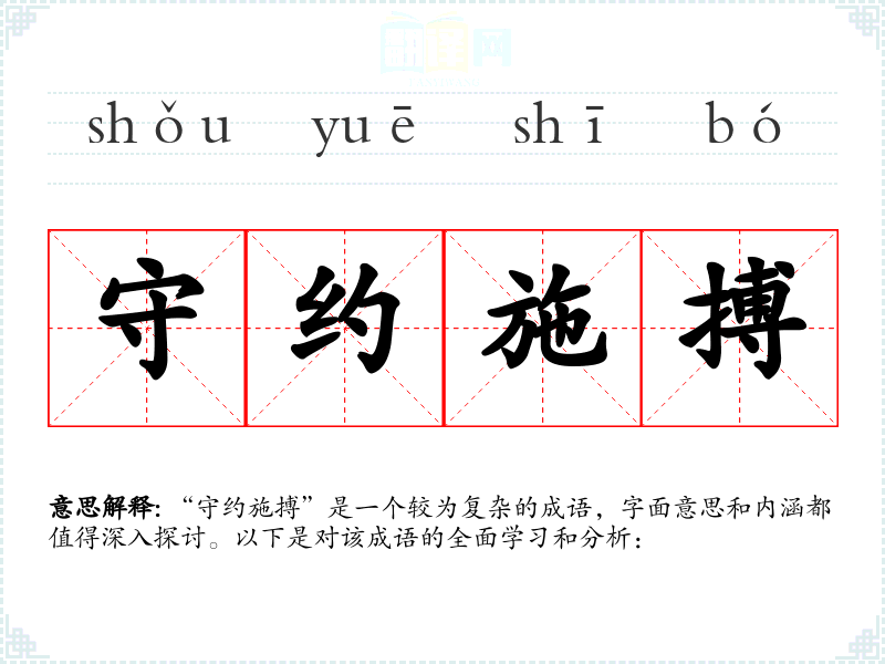 “守约施搏”是一个较为复杂的成语,字面意思和内涵都值得深入探讨。以下是对该成语的全面学*和分析: