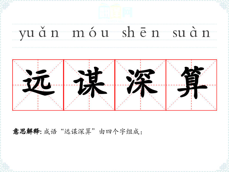 整体而言,“远谋深算”指的是一个人具备长远的眼光和深刻的智慧,善于制定周密而长远的计划,通常用于形容具有高超智慧和战略眼光的人。